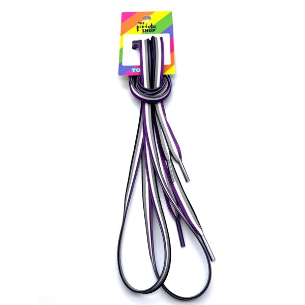 Jazz up your shoes with this awesome pair of Asexual / Ace community flag shoelaces. Make a real but subtle statement with your footwear.