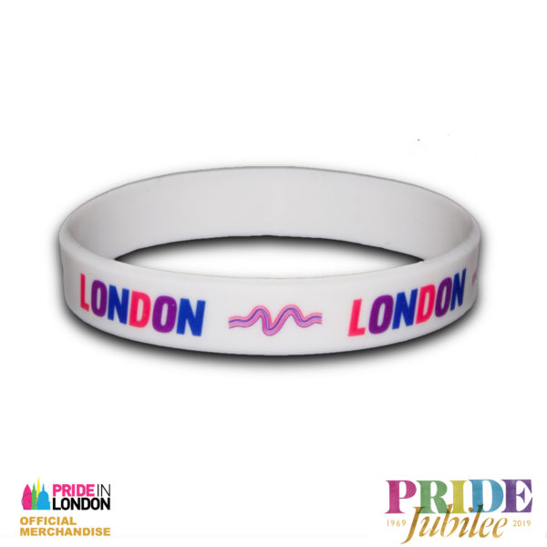 These Pride In London Wristbands feature the LONDON logo in Bisexual colours.