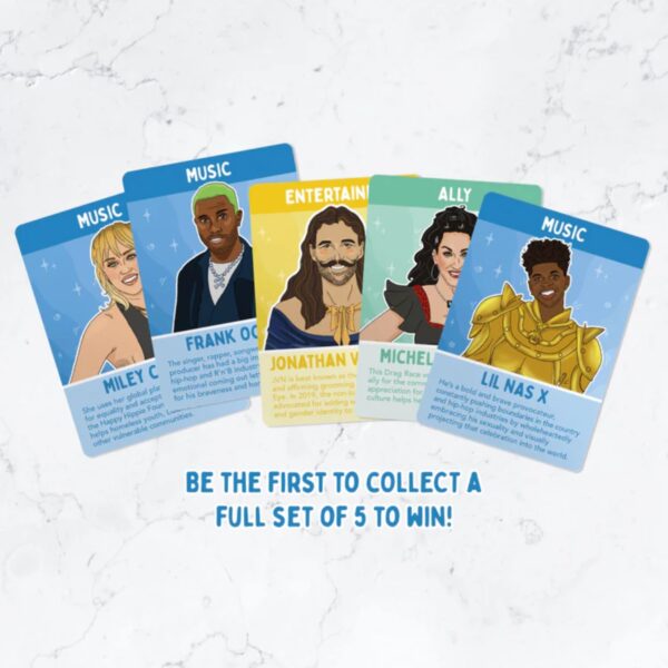 Loud & Proud is a super-speedy card game celebration of queerness. Fifty iconic personalities from 10 categories, including movies, music, and drag, are available for players to collect. Collect a full set. Snatch a flag. And win the game.