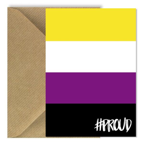 These Non Binary Flag cards are part of the #PROUD range. Blank inside for your own messages should they be to wish someone a Happy Birthday or to Congratulate them on coming out. Show someone you’re #PROUD of them.
