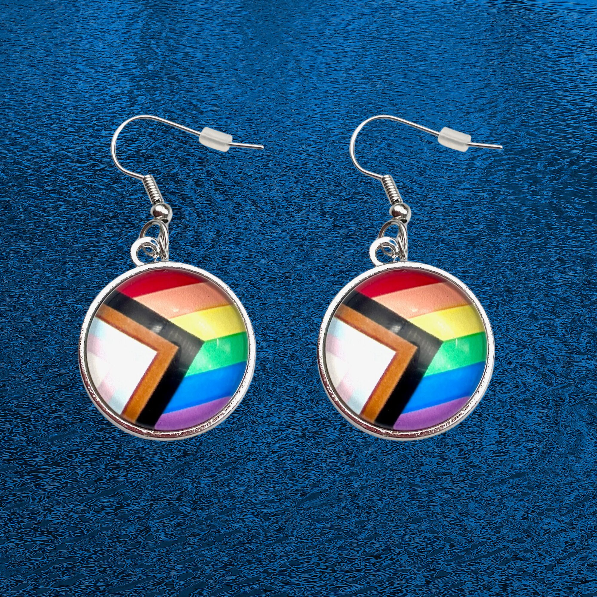These Gay/ LGBTQ Rainbow Bezel/Resin drop earrings are a fabulous way to show your support for the LGBTQ community. They are finished with silver-plated fish hook backs and a pair of rubber stoppers.