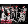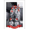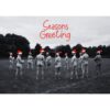 These cheeky B&W cards feature bright red Santa hats for each of the players and a warming seasonal greeting on the front of the card. They are blank inside for your own message.