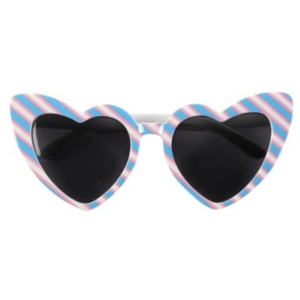 When life’s too bright it’s time to crack out the sunglasses. These Transgender Pride Heart sunglasses are perfect for protecting your eyes in style. They have a striped design that uses the Transgender flag colours.